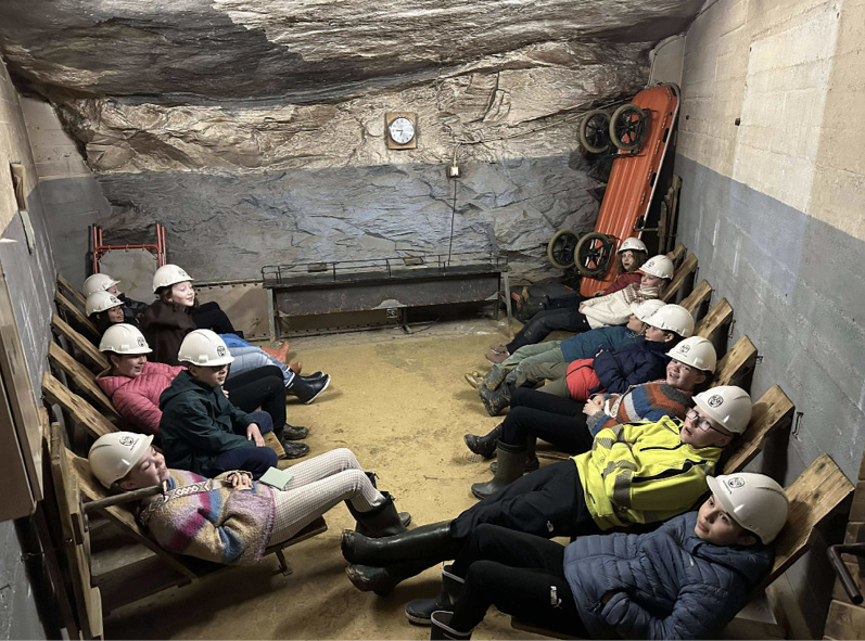 Så stod vi der med hjelm på hodet og støvler på beina, klare for å ta fatt på den historiske veien – vi gikk under jorda, i en 333 år gammel gruve, hele 50 meter under bakken.